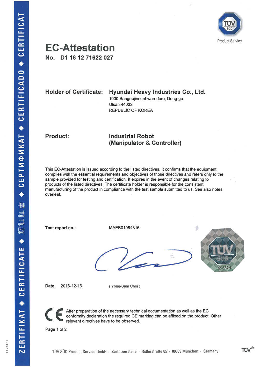 EACC认证证书
