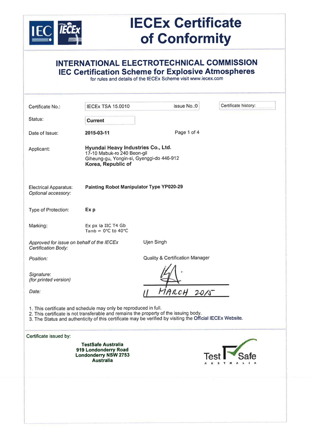 Qualification certificate