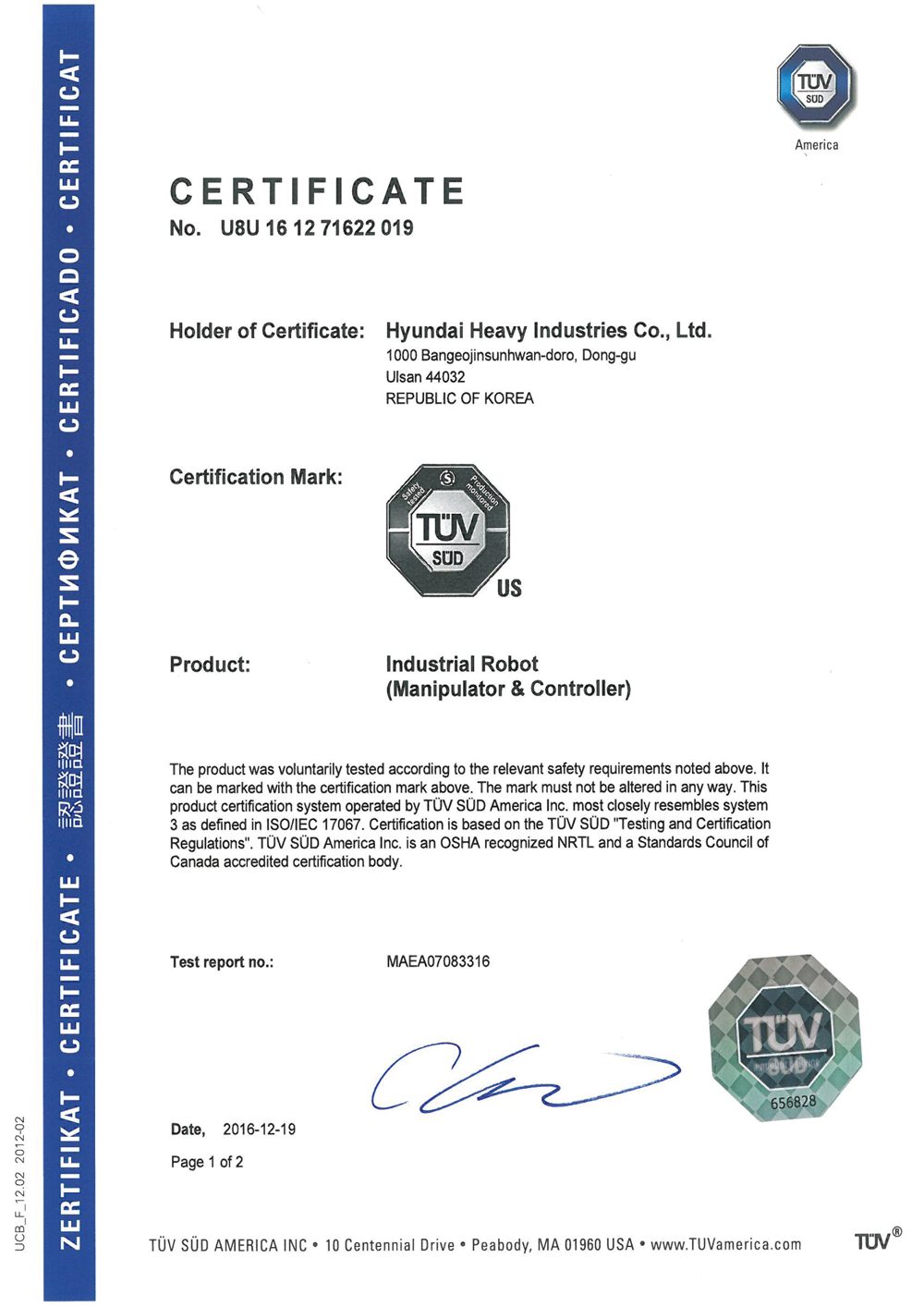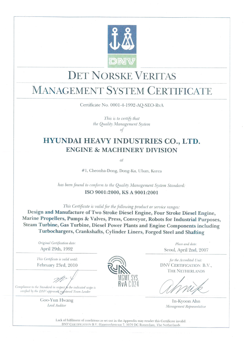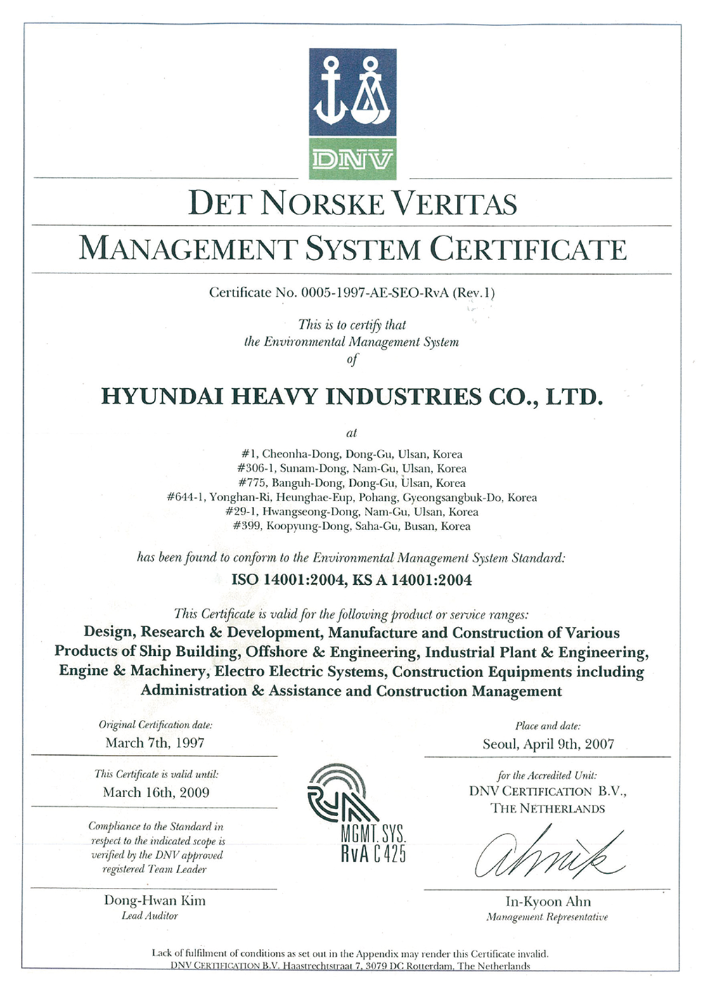 Environmental System Certificate
